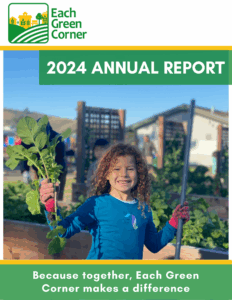 Inspired to make this vision a reality, Sandie established Each Green Corner, an all-volunteer non-profit organization that tackles the design, installation, maintenance, and harvesting of sustainable gardens for the benefit of our hungry neighbors, our health, our climate, and our communities.